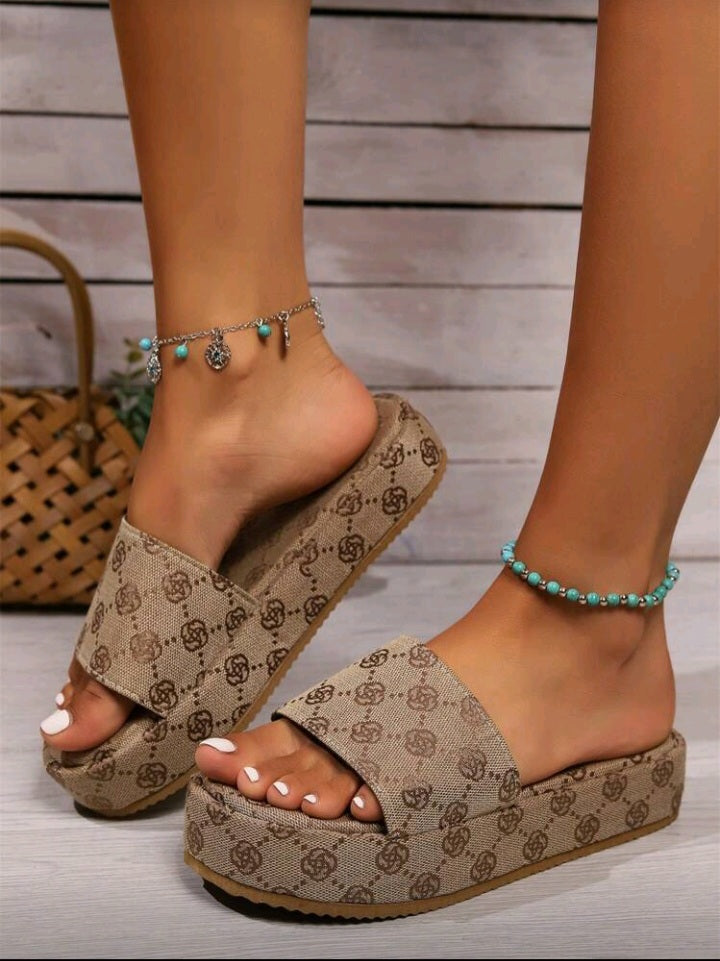 Sandales décontractées pour femmes à semelle épaisse, claquettes à plateforme à motifs tendance et polyvalentes, adaptées aux robes